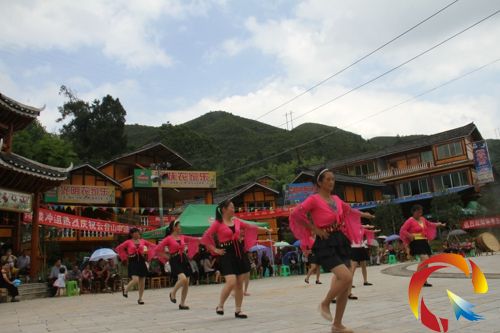 廣場上,載歌載舞,一片歡騰。身著節日般盛裝的鄉親和游客們,伴著《山丹丹花開紅艷艷》曲子,踏歌起舞,高興的臉上盛開著燦爛的笑容。