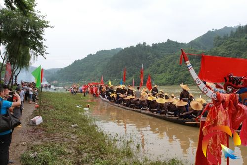 龍舟節活動豐富多彩,現場十分熱鬧喜慶。各鄉、村寨獨木龍舟從各自村落下水后集中唐龍村河段,各龍舟在河中來回競渡風情展示,讓家人親友朝拜,各支獨木龍舟的親友,帶上鴨、鵝之類豐厚的禮物送上龍舟,然后將鴨、鵝、彩旗之類掛在龍頸部上,物品掛得越多就越喜慶,人氣也就越旺。人們以此心愿表示達到避邪消災,萬事如意。(楊通球 劉建設)