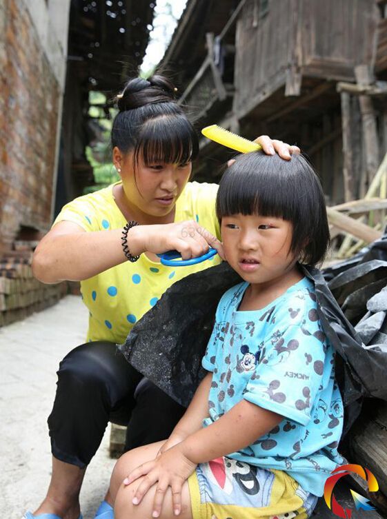 圖為與留守兒童結(jié)對的“愛心父母”為孩子梳頭