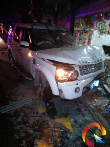 本網訊 12月10日晚上9時許,臺江縣苗疆大道發生交通事故,一輛路虎先是撞飛了路邊停放的一輛雪佛蘭轎車,撞折一顆風景樹,接著把兩個臨街門面中間的墻體撞穿了一個大洞。而在肇事之后,這輛路虎只是保險桿和發動機蓋稍有凹陷,沒有較大的創傷,更無人傷亡。有目擊者稱,司機很有可能是酒后駕駛。(劉宇亭 廖尚海)
