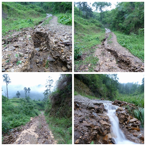 山路被暴雨沖毀難行