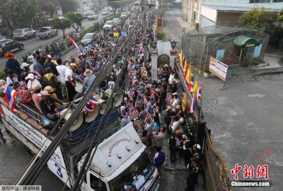 據(jù)外媒報道,1月26日,泰國大選提前投票正式開始,約2500名反政府示威者包圍了至少13到14個投票站,為投票能否最終舉行增加了不確定性。圖為示威者包圍曼谷的投票站。