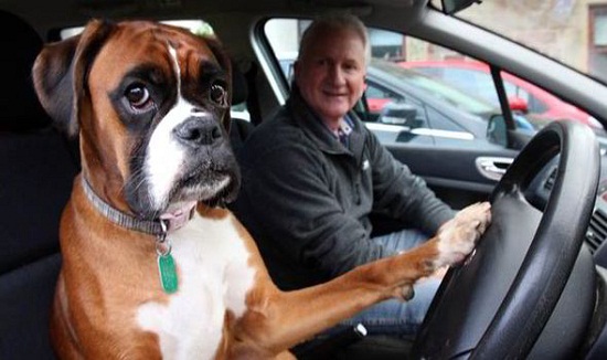 拳師犬弗恩獨坐車內,不停按喇叭,引發路人圍觀。