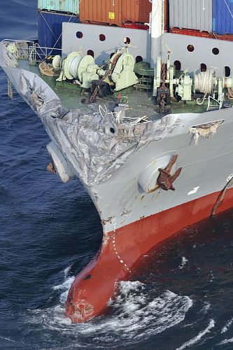 被撞后的韓國貨船