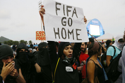 巴西人對(duì)這場(chǎng)體育盛事的相關(guān)費(fèi)用感到憤怒,他們要求政府提供“國(guó)際足聯(lián)(FIFA)標(biāo)準(zhǔn)的”公共服務(wù)。