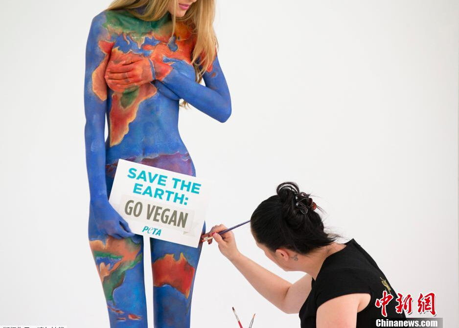 澳大利亞模特身涂彩繪 呼吁保護(hù)地球(組圖)