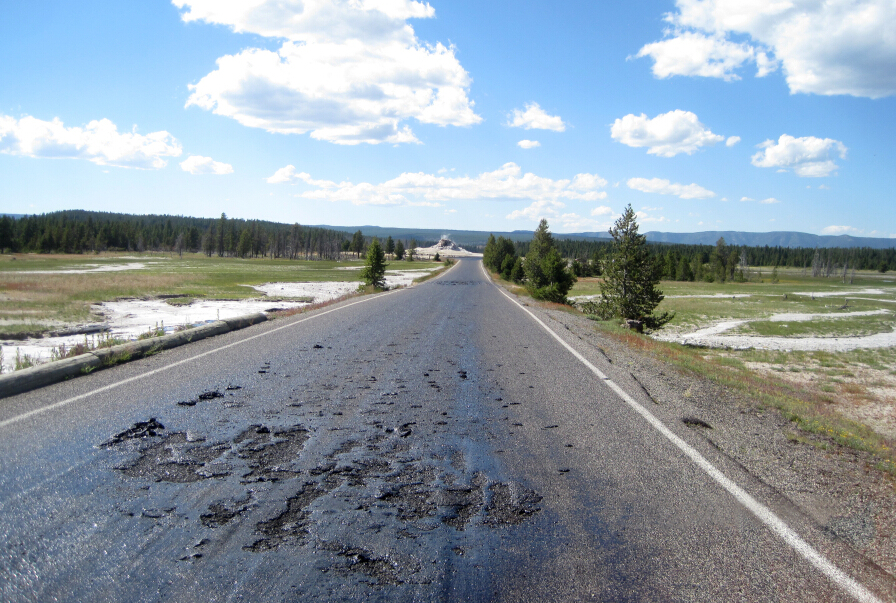 受園區(qū)內(nèi)活火山的影響,黃石國(guó)家公園布滿了地?zé)釤狳c(diǎn),這也是公園最有名的間歇噴泉形成的原因之一。但這也給園區(qū)內(nèi)的維護(hù)帶來(lái)了一定麻煩,因?yàn)檫@不是該公園的馬路第一次因地質(zhì)現(xiàn)象受損了。