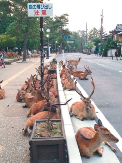 據奈良當地人表示,從今年7月開始,每天傍晚,奈良公園的鹿群,就開始紛紛往大馬路邊移動,他們也不知道為什么,從來沒看過這種情況。