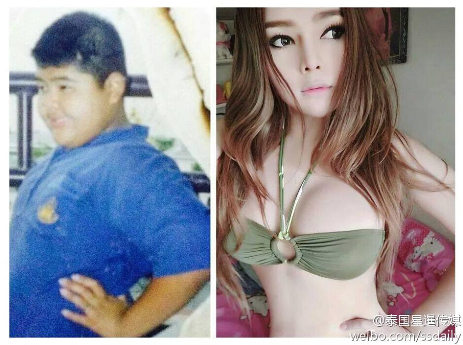 近日,泰國社交網站上一名變性者博得媒體關注。報道稱,該變性者之前一直以女孩身份出現在大眾面前,日前該變性者在臉書上曬出自己變性前還是胖墩男時的照片,著實讓人不敢相信。圖片來源:環球網