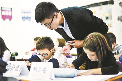 他們的漢語老師在一旁微笑道:“他們年齡小,學(xué)得很快。”