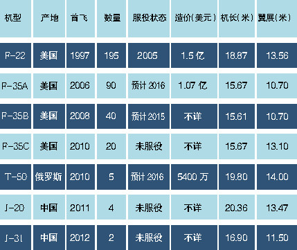 尚未正式服役的第五代戰斗機還包括:美國的F-35、俄羅斯的T-50和中國的殲-20以及珠海航展亮相的中國產殲-31。