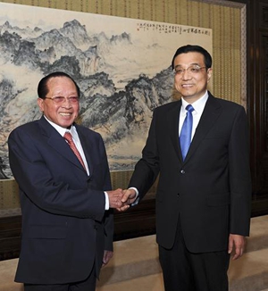 據中國政府網網站消息,國務院總理李克強2日下午在中南海紫光閣會見來華出席中柬政府間協調委員會首次會議的柬埔寨副首相兼外交國際合作大臣賀南洪。