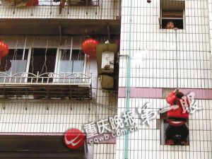 大渡口消防支隊劉家壩中隊張寨提醒,自行翻窗開門,是一種非常危險的行為,不可提倡,因為普通市民打繩結不專業,極有可能因松動而滑落。如市民鑰匙落在家中,可撥打119報警電話求助,消防隊為市民開鎖,不收取任何費用。