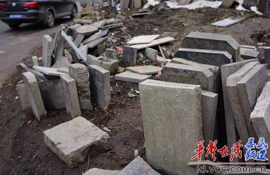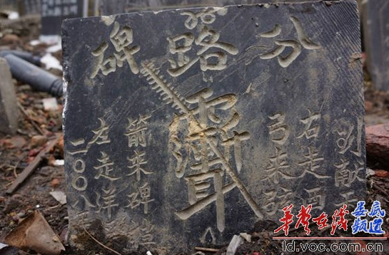 在跑馬嶗山下立碑處,記者判斷,在崩塌的路基下,應該掩埋了許多的擋箭碑,一位路過此地的80來歲的張姓老人,也證實記者的觀點,他講,在他小時候,在這里看到許多的碑,“都是清代的,也許明代的都有。下面應該埋了4、500塊。此地的碑加起來,應該不少于800塊。”