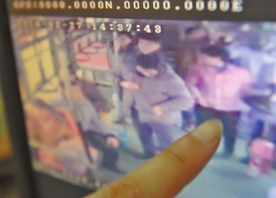 昨天上午10時,在100路公交車調度室,車隊的領導為失主陳先生調出了車上的監控錄像。監控顯示:2月27日14時16分,車行至化工路西四環站時,一名女子上車后,站在靠門處右側座椅的第三個座位旁邊,身體貼著扶手柱子,四處張望。女子有三四十歲,穿粉色襖。14時32分,車上乘客下了許多,只剩下坐在中間的陳先生。女子見狀,立即坐在陳先生右側的座位上,另一名男子,則過來坐在了陳先生左側座位上。