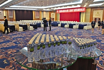 會場內(nèi)提供給代表的礦泉水,瓶身都貼有標(biāo)簽,避免錯(cuò)拿和浪費(fèi)。