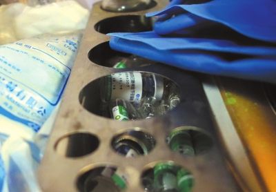 車內各種用過的注射藥劑瓶子和未使用的放在一起。