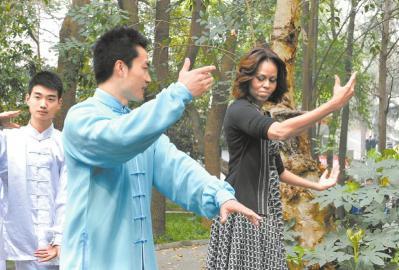 米歇爾說,其實在美國很多中學生都知道太極拳,她回國之后也會建議兩個女兒去學習太極。這是一種很神奇的運動。葉子說,她很幸運,跟米歇爾交流了好一陣子,她告訴米歇爾她曾經去過美國交流,她很喜歡美國的學校。“我們挺有共同語言的!”葉子說。(記者李寰)