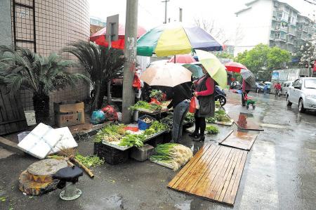 幾家早餐店不僅把廚具擺到了馬路上,旮旯里的垃圾更是堆成了小山;一家手機銷售鋪更換了招牌,拆下的舊件仍在路上;一家夜宵店前天晚上占道擺攤的桌凳仍擺在店外,遍地油污無人清理,大量垃圾堆在路邊……