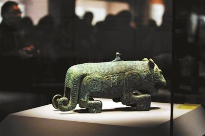 商代的伏鳥雙尾青銅虎看上去憨態(tài)可掬 攝影/記者 魏彤