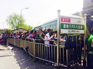 昨天早上剛過6點,就有乘客在德勝門長途汽車站排隊等車,其中多是去八達嶺長城游玩的。為了應對乘客激增的狀況,公交公司調來大量公交應急車,車輛一度從德勝門橋排至鼓樓橋,造成二環輔路東向西方向交通擁堵。截至中午12點交通才恢復暢通。