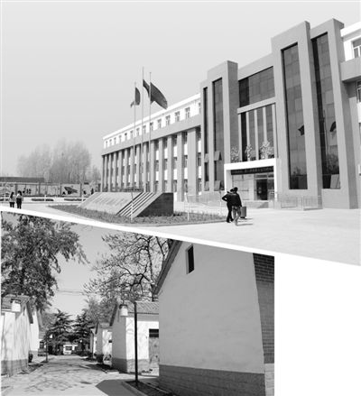 靈壽二中現代化的教學樓與縣委辦公的平房。 記者 趙梓斌 攝 制圖:張芳曼