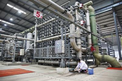 “每1噸海水可生產出0.46噸的淡水,供給企業使用”,工作人員介紹,剩下54%的濃鹽水并不是直接排放到海里,而是通過管道被輸送到附近的三友化工,作為制堿制鹽的“主角”,實現循環利用。