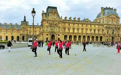 中國大媽走出國門,在法國盧浮宮的廣場上跳廣場舞?
