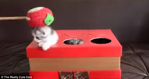 在主人發布的視頻中,他們在一個盒子上打了6個洞,將貓咪裝進去,然后當貓咪的腦袋鉆出來的時候,用玩具輕輕把它們按回去。不過,最終盒子里的貓咪都鉆了出去。