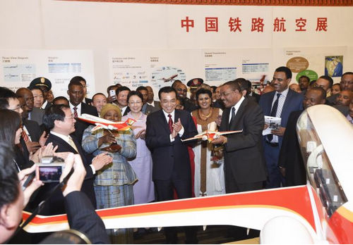 當(dāng)?shù)貢r間5日上午,中國鐵路航空展在非盟會議中心舉行,中國國務(wù)院總理李克強及夫人程虹、埃塞俄比亞總理海爾馬里亞姆夫婦、非盟主席祖馬等共同參觀。CRH380高速動車組、ARJ21客機等裝備模型吸引著非洲政要的目光,他們不時詢問高鐵時速、飛機載客量等。李克強說,這些裝備是中國自主研發(fā),適合非洲國家需求,中國愿同非洲國家分享技術(shù)、培訓(xùn)、管理經(jīng)驗,幫助非洲實現(xiàn)世紀(jì)夢想。(記者 郭金超)
