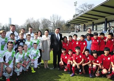 今年3月,習近平出訪歐洲四國,訪問中也不缺少“足球元素”。3月22日,在荷蘭王宮的盛大國宴上,習近平與荷蘭傳奇門神范德薩握手,并表示“你在中國有許多粉絲,是中國球迷的偶像”。在德國,他和夫人彭麗媛前往綠茵場,看望了在德國訓練的中國小足球隊員。 新京報記者 儲信艷