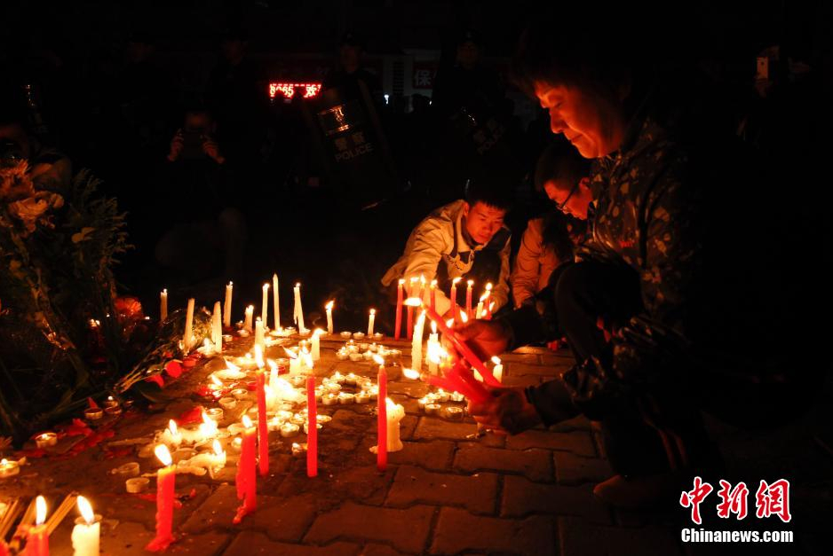 5月23日晚,新疆烏魯木齊市民眾攜帶菊花和蠟燭前往該市公園北街,自發悼念這里在“5.22”暴力恐怖事件中的遇難者。中新社發 張浩 攝