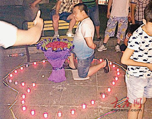 看男子如此執著,一名圍觀者說:“要不我們幫你給女孩打個電話,幫你約她出來,你這樣一直跪著也不是個事啊!”