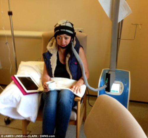 去年6月,凱恩被診斷出患有乳腺癌。醫(yī)生告知她需要通過治療來除去腫瘤,因此她需要接受化療和放射性治療。而在治療的過程中,凱恩為了保住自己的頭發(fā)需要忍受每治療階段3小時(shí)的頭部冷凍,而醫(yī)生卻不能保證這樣的方法一定奏效。這樣的冷凍治療可以抵抗抗癌藥物,從而保住頭發(fā)。這樣的方式是很痛苦的,需要把許多冰塊放在頭上,還必須用輔助的裝置包住全部的頭發(fā)和眉毛。而凱恩之所以選擇如此方式來保住自己的頭發(fā),是為了她的兩個(gè)孩子。她不想讓孩子看到自己沒有頭發(fā)的樣子而感到害怕。