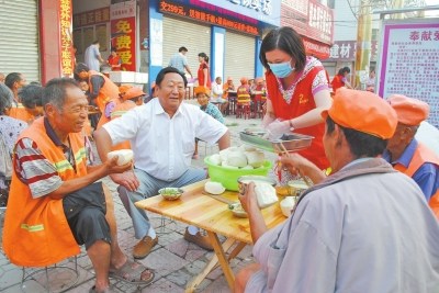 在縣政協的支持下,李振賢很快在縣城確定了3個環衛工免費早餐供應點,分別位于東部、中部和西部的繁華地段。“按照豫東市民的生活習慣,確定了每名環衛工人伙食標準為5元。”李振賢說。