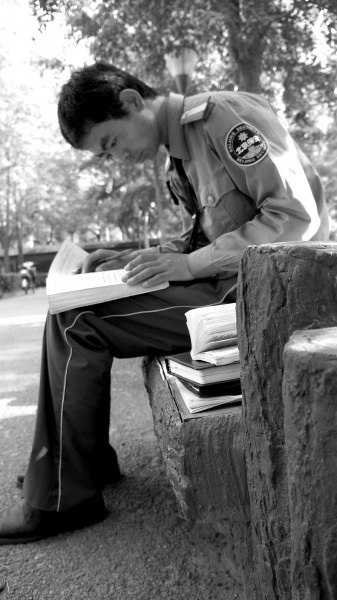 劉生生今年24歲,他是陜西榆林人,父母都是當地農民。家中兄弟三人,因為生活窘迫,劉生生將讀書機會留給了弟弟。2009年高中畢業后,他外出打工。他曾在廣州做過小買賣,賠得身無分文;也曾在北京當過建筑工人,還險些在一次工程事故中喪命。后來,劉生生來到北外做保安,他爭取到在停車場負責停車、看管車輛的工作,利用業余時間每天背誦《新概念英語》,成為北外校園中的名人。