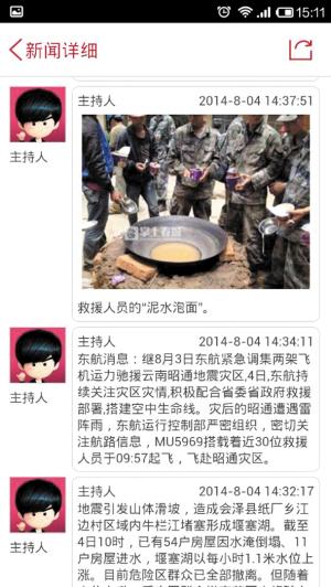 “從昨天到今天陸續有100多人給我發過現場照片。”合文薄回憶。從地震發生到4日18時,掌上春城直播間一直開啟,不間斷發布一線相關新聞250條,現場照片150余幅,其中最早的一組圖片被騰訊迅速截取,并被新華社、新浪微博等媒體大量引用。這些照片能第一時間和大家見面,正是因為有這100多位普通群眾臨時組建的“特派記者隊”,另一邊,心系現場的讀者也通過掌上春城直播間發布的《血站告急!到哪獻血?》、《魯甸到震中道路塌方》等翔實信息,了解災區最新情況,理性參與救援。