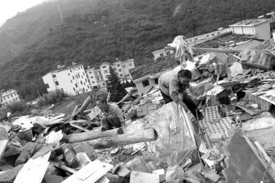 陳立志站在自家已成一堆黃土的屋外,望著鄰居巋然不動的二層洋房嘆氣,他不知道在外打工的自己何時賺到足夠的錢,蓋上一棟磚混結構的新房,“以前從沒想過土房子不結實,這一次,你看,對比那么明顯。”