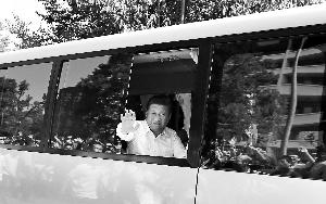 12時15分左右,習近平的車隊駛出校園。警戒線外等候多時的學生們立即沖進歡送隊伍。“我拍到習大大的照片了。”一位學生激動地呼喊起來,他的歡呼聲立即引來大批圍觀者。“同學,能不能給我翻拍一下。”這位學生的手機立即成為香餑餑,被大家圍得里三層外三層,紛紛要求翻拍照片。只見照片中,習近平坐在車上,微笑著向大家揮手。一位大一新生李同學情不自禁地說,他在軍訓中是優秀學員,有幸參加了歡送習總書記的隊伍,“以前都是在電視上看到,沒想到這次竟然能親眼見到,習大大沖著大家揮手,一點兒架子也沒有。”