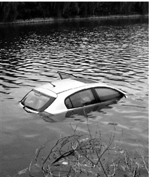 所幸,車身較輕下沉較慢。車子大約一半浸入水里時,他打開車門游回了岸邊。