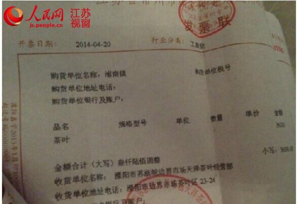 記者注意到,網(wǎng)貼順帶提及今年4月20日溧陽(yáng)市團(tuán)委書(shū)記唐某贈(zèng)送周某價(jià)值6600元的茶葉,并開(kāi)具兩張發(fā)票供周某報(bào)銷,但發(fā)票抬頭為浦南鎮(zhèn)。網(wǎng)絡(luò)曝光的其中一張發(fā)票顯示,日期和抬頭均與此說(shuō)法相符,茶葉購(gòu)自溧陽(yáng),金額為3600元。對(duì)此,浦南鎮(zhèn)辦公室相關(guān)負(fù)責(zé)人表示,他們用的茶葉一直在連云港本地購(gòu)買;鎮(zhèn)財(cái)政所所長(zhǎng)孫春兵則稱,網(wǎng)上所發(fā)的茶葉發(fā)票并未出現(xiàn)在浦南鎮(zhèn)的報(bào)銷流程中。