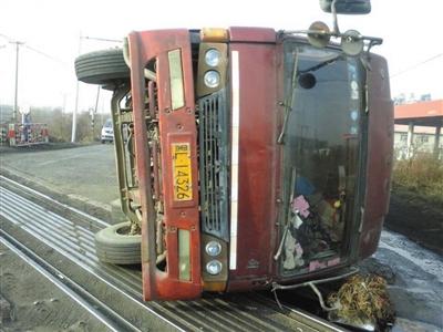 據(jù)貨車司機(jī)介紹,9點(diǎn)左右,他駕駛貨車由市區(qū)往成高子鎮(zhèn)方向行駛,從哈成路334號門前鐵道口通過時,被一輛由南向北行駛的貨運(yùn)列車撞翻。“當(dāng)時車上就我一個人,車速并不快,車頭部分剛剛開過鐵道線,就聽右側(cè)車身處‘咣當(dāng)’一聲,車就向左側(cè)翻。”貨車司機(jī)從副駕駛車門爬出來后,發(fā)現(xiàn)貨車被一輛貨運(yùn)列車撞翻,所幸他只是左側(cè)胳膊受輕傷,并無大礙。