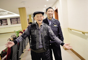 他叫唐斌,曾是一名高級工程師,之前每個月有4000多元收入,今年8月,他來到這家老年養護中心,轉行當起了保安———為了能每天照顧89歲的父親尹杰。