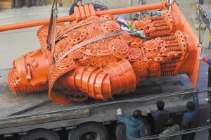 其次是將重約10噸的2000零部件焊接起來。焊接過程中要保證力的平衡,要做到“頭輕腳重”,才不至于摔倒傷人。最終算起來,光用焊條就多達幾萬根。