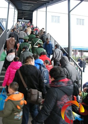 2月9日,因貴州地區遇冰凍惡劣天氣,大量返程農民工在貴州省都勻火車站進站乘車。當天,貴州地區這出現凍雨惡劣天氣,大幅降溫,高寒地區與橋梁、隧道將有結冰現象,對春運造成較大影響。當天通過其它運輸受阻5000多返程農民工擁向貴州鐵路。為此,貴州鐵路部門采取增開售票窗口、增加票額等多種措施,加強旅客進出站、上下車的引導,組織旅客有序乘降,避免旅客滯留和積壓。(姜澤鵬攝)