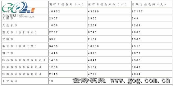 2013年全省公辦幼兒園專任教師的具體缺額情況顯示,所缺專任教師人數(shù)最多的是畢節(jié)市(含威寧縣),達到了7513人;其次為遵義市(含仁懷市),缺額達到了4008人;第三為黔東南苗族侗族自治州,缺額達到了3847人;銅仁市的缺額也達到了2977人。其余州市中,除了貴安新區(qū)的缺額149人,貴陽市的缺額649人以外,六盤水市、安順市、黔西南布依族苗族自治州、黔南布依族苗族自治州5個州市的缺額均在1200人以上。