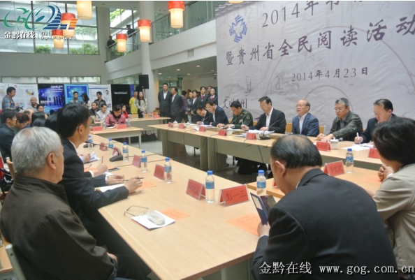 值“世界讀書日”之際,4月23日上午,“2014書香中國·暨貴州省全民閱讀活動座談會”在貴州省圖書館舉行。座談會邀請來自政府、學界、高校、媒體、企業及青少年學生等社會各界代表參加。在座談會上,貴州省委副書記李軍、省文聯主席顧久為獲得首屆全國“書香之家”的貴州入選家庭代表頒發證書和牌匾。