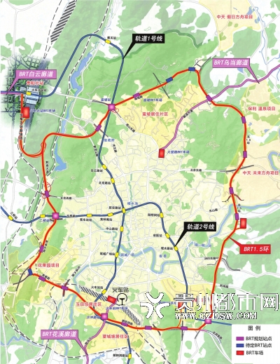 貴陽市建設(shè)BRT,將遵循“1環(huán)+N射線”的規(guī)劃理念。
