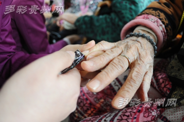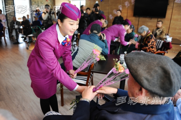 除了精彩的表演,整理著裝、標(biāo)準(zhǔn)的30度鞠躬、整齊的高鐵禮儀手勢一一向老人展示著“動姐”們在高鐵上的一舉一動,讓老人們更加了解到他們是在做什么,得到了一致好評。“動姐”在表演后,向老人們獻(xiàn)上了鮮花,詢問著老人們的身體狀況,為他們修剪指甲,還細(xì)心的為老人們整理衣服,如同老人們的子女一樣,聊聊家常,關(guān)心一下老人的生活。也許平時老人們的兒女因?yàn)楣ぷ鳎瑹o法來到養(yǎng)老院看望老人,“動姐”們的這次到來無疑給老人們帶來了許多安慰,也帶來了他們兒女的思念。