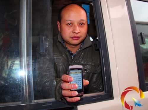 鎮(zhèn)遠客運駕駛?cè)苏故臼謾C收到鎮(zhèn)遠交警發(fā)來的春運安全提示短信